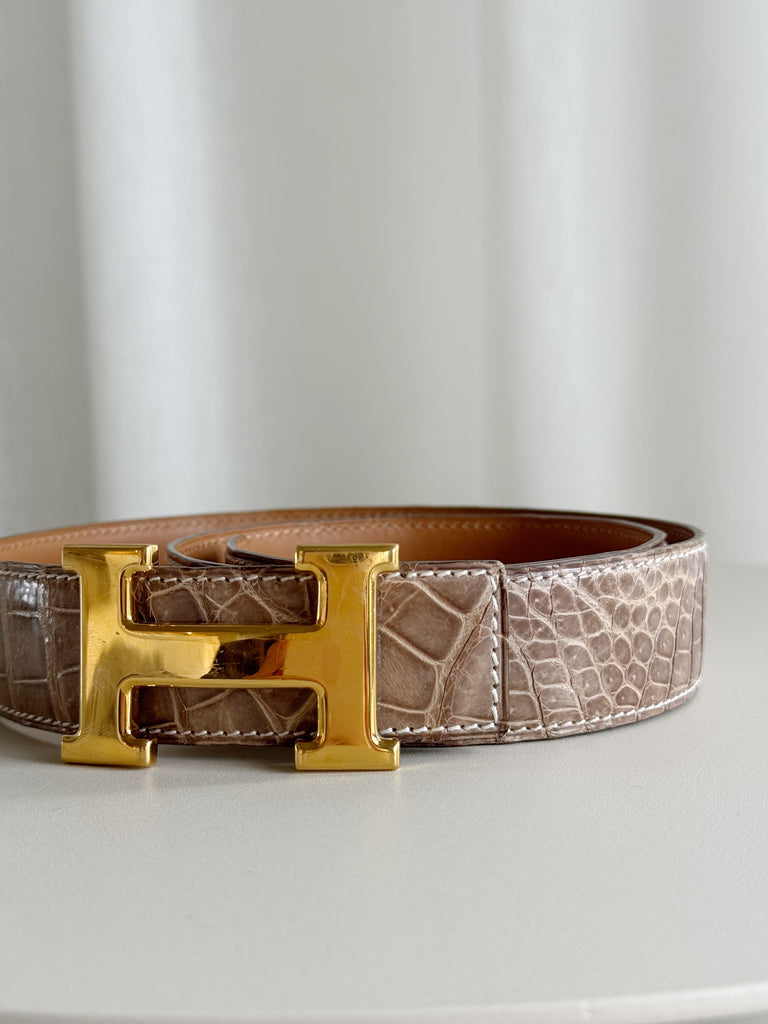 Vintage H belt buckle & Reversible crocodile porosus strap 32 mm