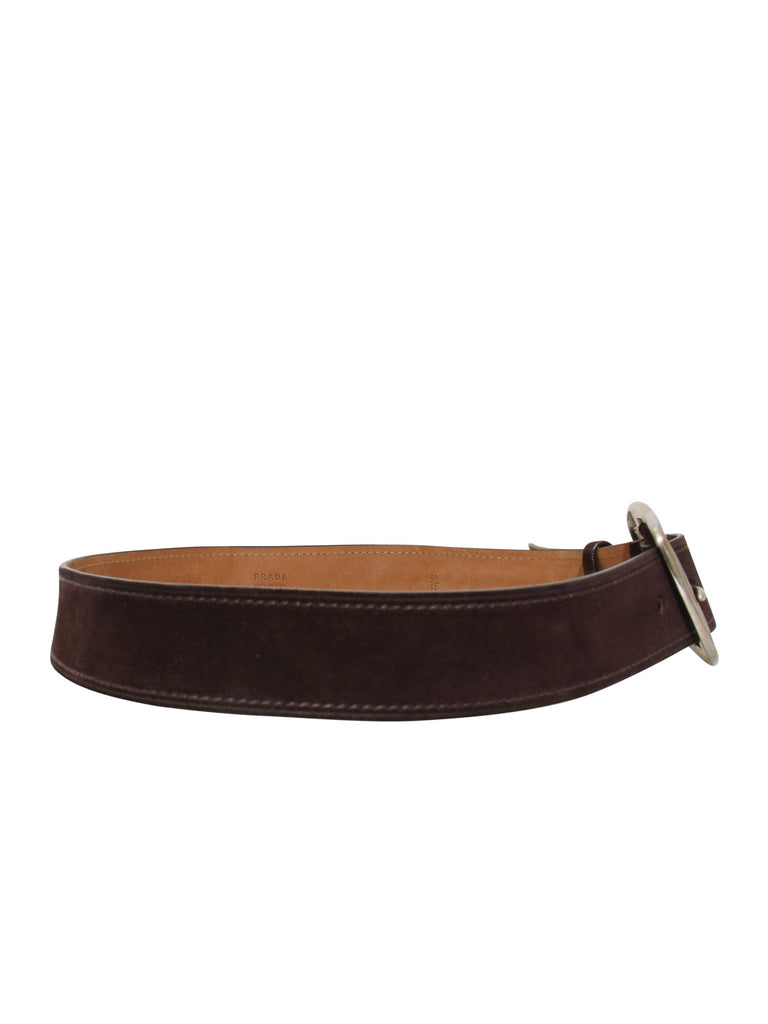 Brown Suede Belt by Prada. Minor signs of wear on the suede and silver-tone buckle.