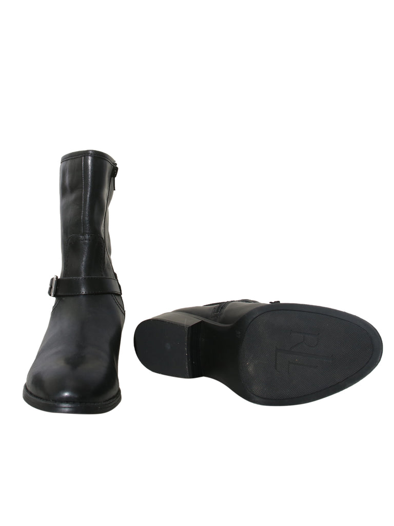 Black Mesi leather booties by Lauren Ralph Lauren.