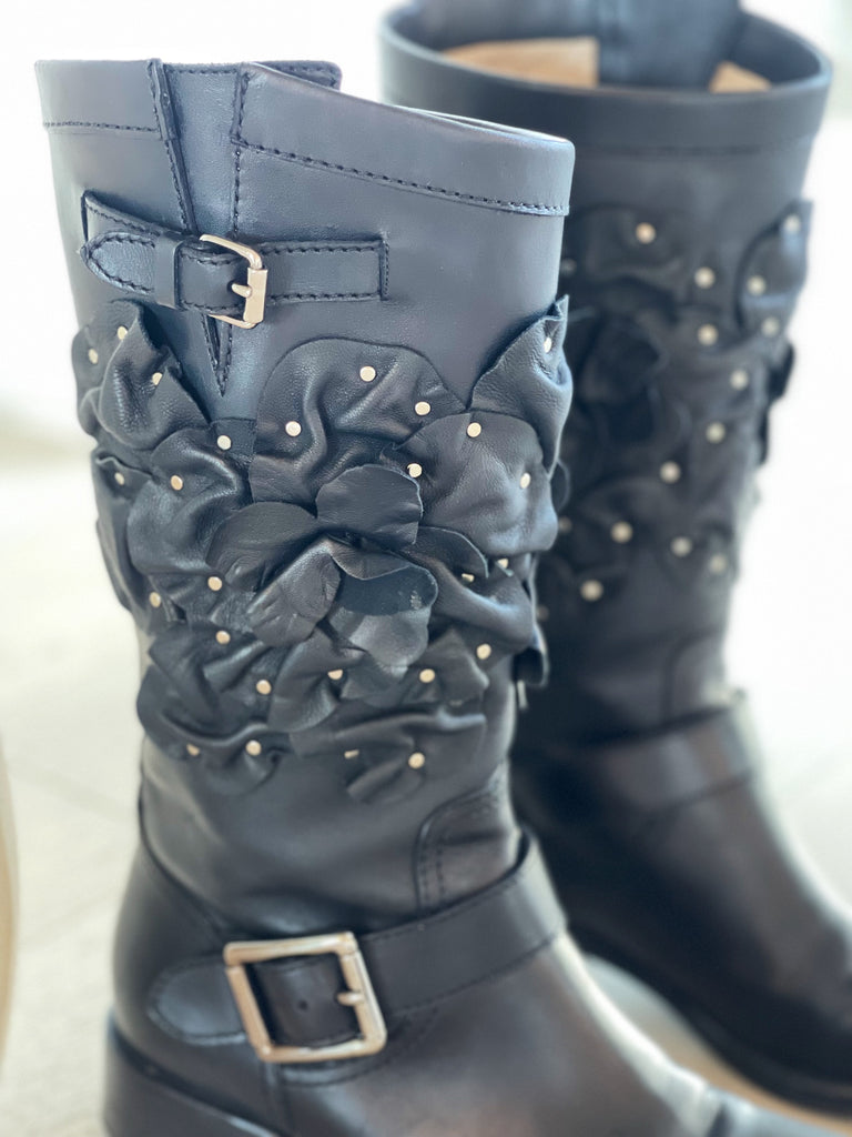 Flower Leather Boots