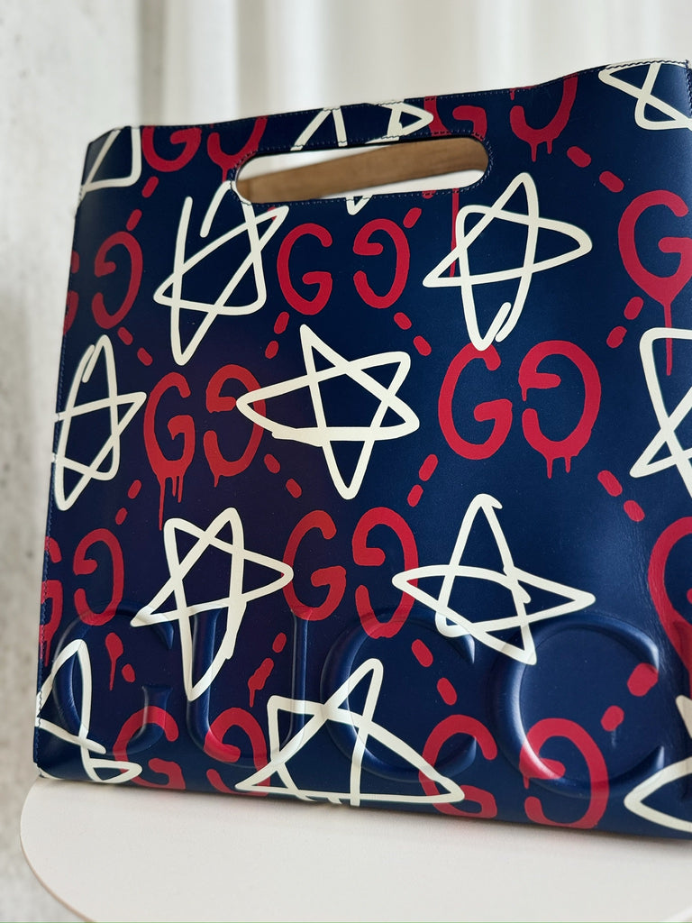 Large Leather Ghost Graffiti Tote
